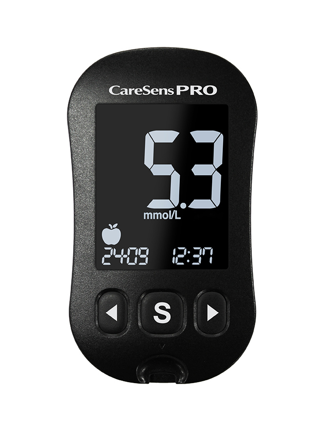 Uusi monipuolinen CareSens PRO -verensokerimittari. Täysi ISO 15197:2013 -standardinmukaisuus. Erillistä koodausta ei tarvita, CareSens PRO -testiliuska koodaa automaattisesti. Näytemäärä on pieni, vain 0,4 mikrolitraa ja tulos on luettavissa 5 sekunnissa. Suuri valaistu LCD-näyttö ja liuskanpoistaja. Mittarissa on ennen ja jälkeen aterian - sekä paastomerkintätoiminnot ja mittari laskee automaattisesti 1, 7, 14, 30 ja 90 päivän keskiarvotulokset. Aterian jälkeinen hälytystoiminto, kolme aikahälytystä sekä vanhentuneen liuskan merkintätoiminto ja hypoglykemiahälytys. Muistipaikat 1000 mittaustulokselle. USB-portin kautta mittari voidaan liittää tietokoneeseen tai älypuhelimeen. Suomen- ja ruotsinkielinen SmartLog-ohjelma mittaustulosten käsittelyyn. Push-data-viestitoiminto. Lisähappi ei häiritse mittauksia. Aloituspakkauksessa on mittari, pistolaite ja lansetteja sekä verensokerin testiliuskoja 10 kpl. Jälleenmyyjät Valmistajan esittelysivu |